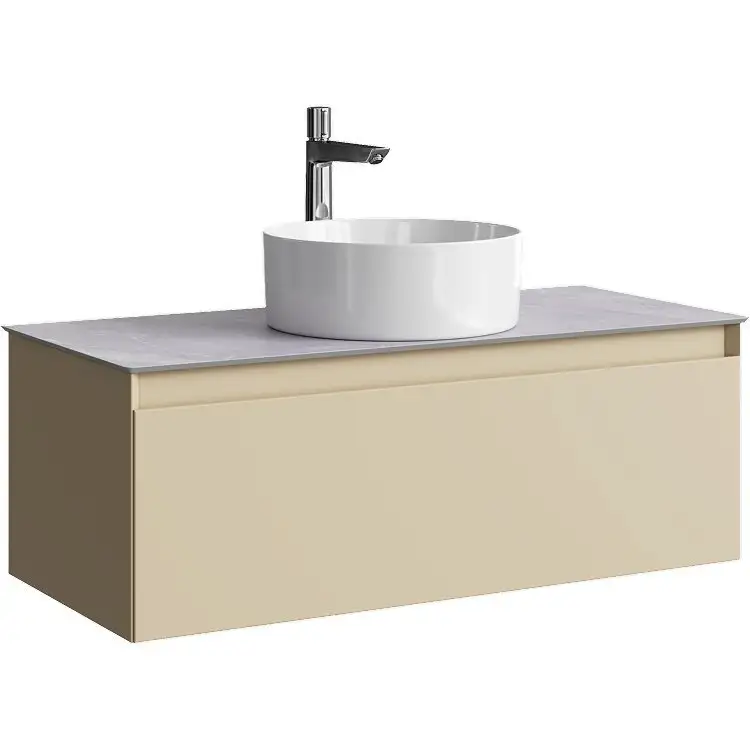 Тумба под умывальник Aqwella Geometria GE01101MD+STG1014X456GS сочетает строгие геометрические формы с высоким качеством материалов. Изготовленная из влагостойкого МДФ с матовой поверхностью, она отлично подходит для современных ванных комнат. Ширина 100 см и глубина 46 см обеспечивают достаточное пространство, а вертикальная установка облегчает уборку пола и визуально расширяет комнату. В комплект входит керамический умывальник и столешница с серым каменным рисунком, что делает эту модель универсальной для любого интерьера. Углы торцов обработаны под 45 градусов, создавая аккуратный и монолитный внешний вид. Удобство обеспечивает harmonious выдвижной ящик с доводчиками, который закрывается плавно и бесшумно. Внутри ящика есть органайзер, позволяющий аккуратно расположить мелкие предметы. Стильное сочетание строгих линий и строгого дизайна делает меблировку современной и практичной. Модель выполнена в бежевом и сером цветах, легко вписывающихся в любой интерьер.