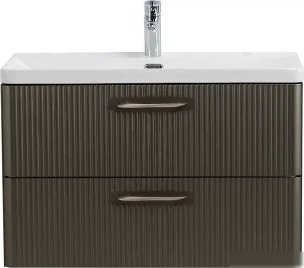 Эта подвесная тумба для умывальника DUE-800-2C-SO-GM-P-FH сделана из МДФ, что обеспечивает прочность и долговечность. Она имеет ширину 80,6 см и глубину 42,3 см, что позволяет удобно разместить на ней аксессуары и предметы гигиены. Тумба выполнена в коричневом цвете с металлическими элементами, придающими ей современный вид. Внутри есть разделитель и органайзер, которые помогают эффективно организовать пространство. В комплекте умывальник не идёт, поэтому можно выбрать подходящую модель по своему вкусу. Установка осуществляется в подвесном стиле, что облегчает уборку под тумбой. Конструкция не имеет встроенной подсветки и угловых элементов, что делает её простой и практичной. Тумба подходит для современного интерьера ванной комнаты и обеспечивает надежное хранение. Благодаря качественной сборке и функциональности, она станет удобным дополнением вашего пространства.