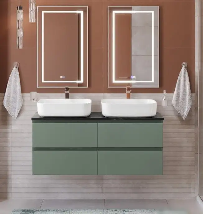 Тумба под умывальник BelBagno Kraft-1200-4C-SO-VO хорошо подойдет для современной ванной комнаты. Она выполнена из ламинированного ДСП и МДФ, что обеспечивает долгий срок службы и легкую очистку. Тумба имеет ширину 120 см и глубину 45,5 см, она размещается на стене, что экономит место. Внутри есть удобные дводверные отделения и организатор пространства для хранения всех необходимых вещей. Механизм дверей оснащен плавными доводчиками, что делает использование более комфортным. Тумба не включает умывальник, что позволяет выбрать модель по своему вкусу. Ее зеленый цвет добавит яркости в интерьер. Высота изделия равна 50 см, аDepth — 45,5 см, что подходит для большинства комплектов.