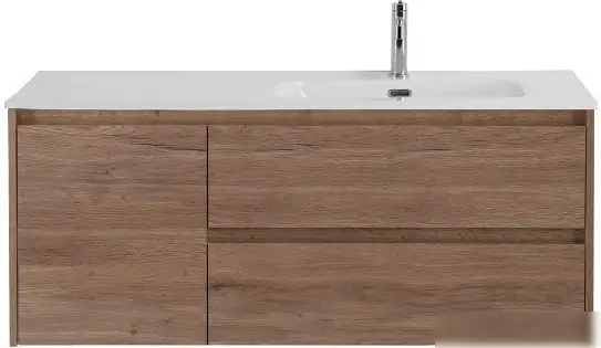 Тумба под умывальник Kraft KRAFT-1000-2C-1A-SO-RT-R — это удобный и практичный элемент для ванной комнаты. Она состоит из двух выдвижных ящиков и одной распашной дверцы, что позволяет удобно хранить все необходимые вещи. Тумба выполнена из ЛДСП в коричневом цвете "rovere tabacco" и имеет современный дизайн с фрезерованными ручками. Размеры: ширина 100 см, глубина 46 см, высота 50 см, что идеально подходит для небольших и средних ванных комнат. Тумба предназначена для подвесной установки, что облегчает уборку под ней и создает ощущение пространства. Обратите внимание, что умывальник в комплект не входит. Эта мебель отлично впишется в любой интерьер и прослужит долго благодаря качественным материалам.