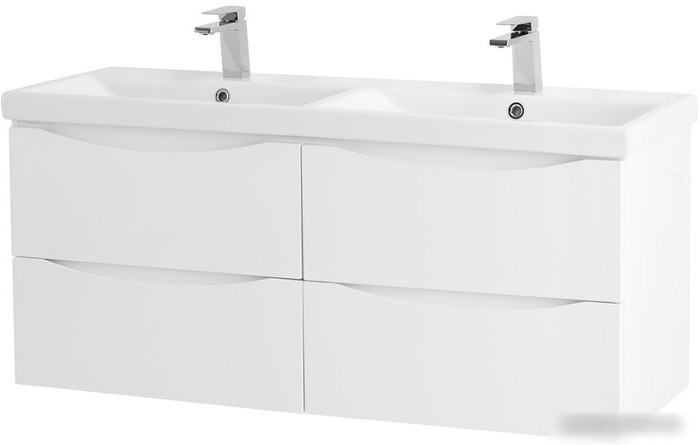 Эта подвесная тумба под умывальник из МДФ отлично подходит для современной ванной комнаты. Она имеет ширину 117,2 см и глубину 43,8 см, что позволяет разместить её в просторных ванных. Тумба выполнена в белом цвете bianco lucido, который легко сочетается с разными стилями интерьера. Она оснащена двумя вместительными ящиками, которые работают на доводчиках, чтобы открыть и закрывать их мягко и без усилий. Конструкция тумбы имеет угловую форму, что позволяет удобно использовать угол комнаты. В комплект с тумбой не входит умывальник, что дает возможность выбрать подходящую модель. Тумба устанавливается на подвесной системе, что облегчает уборку пола и обеспечивает аккуратный вид. Высота изделия — 50 см, что удобно для использования. Таким образом, эта тумба сочетает практичность, стиль и простоту в установке.