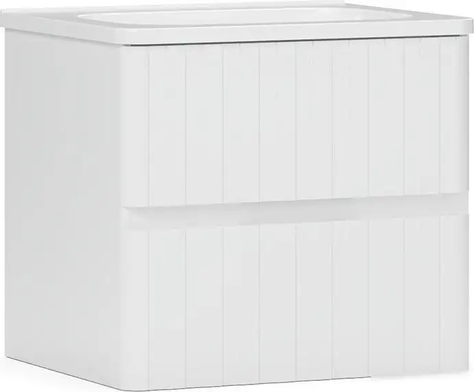 Тумба Belux Осло НП 60-02 — это современное решение для вашей ванной комнаты, выполненное в минималистическом стиле с белым матовым покрытием. Она подвесная, что позволяет сэкономить место и легко ухаживать за полом. Тумба оснащена двумя вместительными ящиками с системой плавного закрывания, в которых легко разместить все ванные принадлежности. Уникальный дизайн с вертикальными рельефными полосами делает мебель оригинальной и стильной. Тумба подходит для умывальника шириной 60 см, при этом сама ширина составляет 57,6 см. Она легко сочетается с другими элементами коллекции Осло, создавая гармоничный интерьер. Обратите внимание, что умывальник в комплект не входит, и изделие устойчиво к влаге благодаря влагостойкому покрытию.