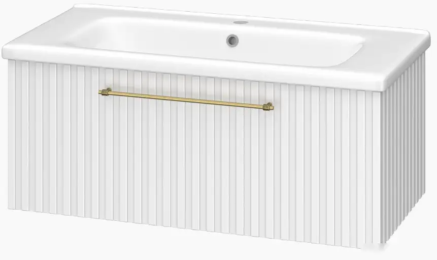 Тумба под умывальник Brevita Alicante 90 — это удобная подвесная мебель из МДФ в белом цвете. Она имеет ширину 89 см и глубину 43,3 см, что подходит для большинства ванных комнат. Высота тумбы составляет 35 см, а вес — примерно 22,6 кг, ее легко установить и она занимает мало места. В комплект не входит умывальник, так что можно выбрать модель, которая вам больше нравится. Тумба не имеет встроенной корзины для белья и не предусматривает угловую конструкцию, что обеспечивает простой дизайн и практичность. Благодаря своим размерам и минималистичному стилю, она отлично впишется в современный интерьер ванной комнаты.