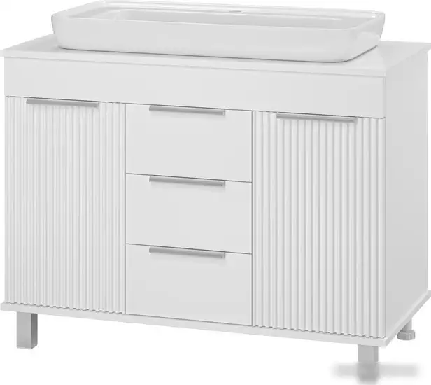 Тумба под умывальник Brevita Enfida 100 отлично подойдет для ванной комнаты, так как она выглядит стильно и сочетает в себе элементы классики, модерна и минимализма. Она выполнена из надежных материалов, таких как ЛДСП и МДФ, и имеет размеры 100 см в ширину и 48 см в глубину. В комплект не входит умывальник, однако тумба оборудована направляющими с доводчиками, что обеспечивает плавное закрытие. Есть три варианта цвета: белый, бежевый и черный, чтобы выбрать подходящий для интерьера. На фасадах есть оригинальная волнистая фрезеровка, а ручки сделаны из металла – это удобно и красиво. Тумба весит 47 кг и легко выдерживает нагрузку при использовании.