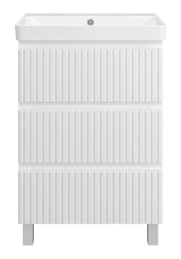 Тумба под умывальник Brevita Victory 60 сочетает современный дизайн и практичность. Она изготовлена из долговечных материалов — ЛДСП и МДФ, что обеспечивает устойчивость и лёгкое обслуживание. Размеры позволяют установить её на высоте 83 см и шириной 56 см, идеально подходящие для стандартных ванных комнат. Конструкция предназначена для монтажапон на пол и подходит для умывальника шириной 60 см. Тумба обладает глубиной 45,4 см, что обеспечивает достаточное пространство для хранения необходимых предметов. Она не имеет угловых элементов и встроенной подсветки, что делает её более простой в использовании и уходе. Основные функциональные особенности — использование выдвижных ящиков с направляющими, которые позволяют удобно хранить и быстро находить вещи. Вес изделия составляет 32 кг, что обеспечивает стабильность и прочность. Тумба выполнена в классическом белом цвете, который легко впишется в любой интерьер ванной комнаты.