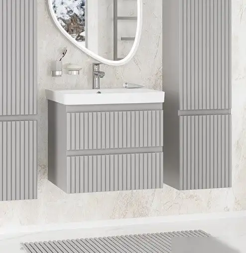 Тумба под умывальник Brevita Victory 60 сочетает практичность и стиль. Она выполнена из ЛДСП и МДФ, что делает её прочной и долговечной. Тумба предназначена для умывальника шириной 60 см и устанавливается в подвесном формате, что облегчает уборку под ней. Размеры тумбы: ширина 56 см, глубина 45.4 см и высота 49 см, вес — 22,5 кг. Ее серый цвет подходит к разным интерьерным стилям. Угловая конструкция отсутствует, что обеспечивает более удобное использование пространства. Внутри есть выдвижные ящики с доводчиками, которые делают открытие и закрытие мягким и тихим. Тумба не оснащена встроенной подсветкой или дополнительными функциями, что делает её простой в использовании. Благодаря качественному материалу и функциональной конструкции, она прослужит долго и будет удобно в эксплуатации.
