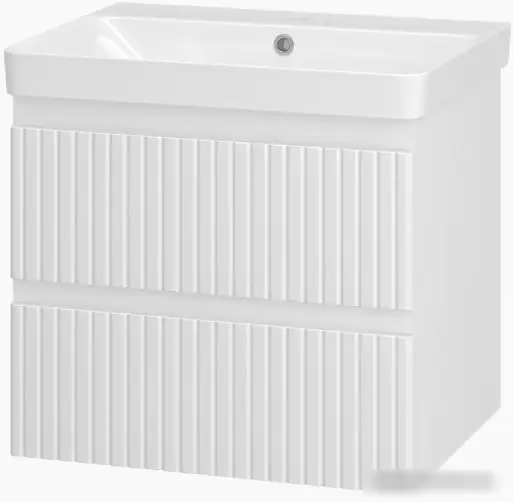 Тумба под умывальник Brevita Victory 60 выполнена из прочных материалов ЛДСП и МДФ, что делает её устойчивой и долговечной. Она имеет ширину 56 см и подходит для умывальника шириной 60 см. Тумба устанавливается на стену, что позволяет экономить место в ванной комнате. Ее белый матовый цвет легко сочетается с любым интерьером. В конструкции отсутствует встроенная подсветка и угловая форма. Тумба оснащена системой мягкого закрытия дверец и удобными направляющими для дверок. Обеспечивает достаточно места для хранения мелких предметов и средств гигиены, что делает её практичной и удобной в использовании.