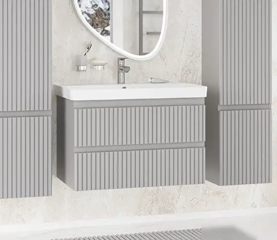 Тумба с умывальником Brevita Victory 80 отлично подходит для современной ванной комнаты. Ее ширина составляет 80,5 см, а глубина — 46 см, что делает её удобной для использования в небольших пространствах. Тумба изготовлена из ЛДСП и МДФ, что обеспечивает прочность и долговечность. Установку можно выполнить как навесную, а угловая конструкция не предусмотрена. В комплект входит умывальник шириной 75 см, что облегчает монтаж и использование. Тумба выполнена в сером цвете с хромированными деталями, которые легко сочетаются с другими элементами интерьера. Вес изделия — 46,8 кг, что обеспечивает стабильность. Устройство имеет встроенные доводчики, которые плавно закрывают дверь, предотвращая износ и шум. Также тумба отличается компактными размерами и простотой в уходе. Благодаря своим функциям, она сочетает практичность и стильность для любого интерьера.