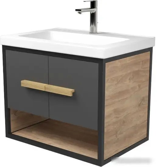 Дабер Тумба под умывальник 009 Тобаго/Эридан/Артвин 60 Т9.6Т.2.4 (черный/серый/дуб канзас коричневый)
