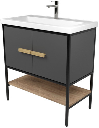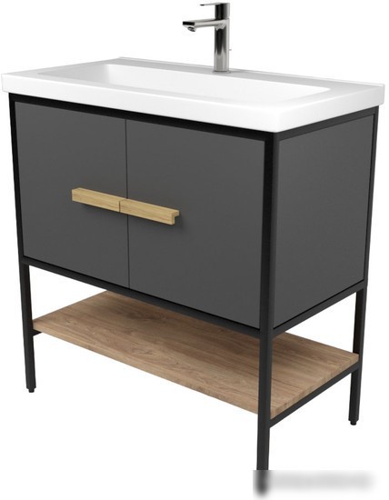 Дабер Тумба под умывальник 010 Тобаго/Эридан 80 Т10.8Т.2.4 (черный/серый/дуб канзас коричневый)