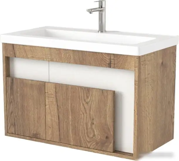 Тумба Daber 016 подходит для умывальников Тобаго, Артвин и Эридан, и идеально сочетается с подсветкой, создавая приятную атмосферу в ванной комнате. Она выполнена из прочного ЛДСП толщиной 18 мм, что обеспечивает долговечность и устойчивость. Тумба установлена на стену и не имеет ручек, открывается за фасад, который с плавным закрыванием. Встроенная подсветка идет в комплекте с блоком питания, что облегчает установку и использование. Размеры тумбы — 79 см в ширину, 42 см в глубину и 50 см в высоту, она весит 20 кг. Она доступна в белом цвете с дубовым галифаксовым оттенком, что хорошо впишется в любой дизайн ванной. Эта модель не включает умывальник, но к ней подойдет стеллаж 014 для дополнительного хранения.