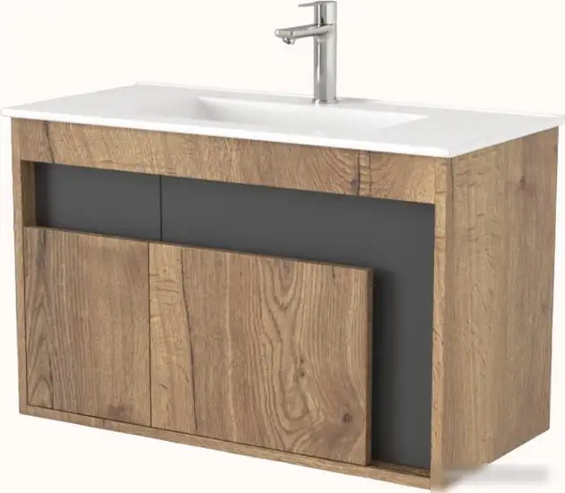 Тумба под умывальник Дабер 016 WeltWasser Deilbach выполнена из прочного ЛДСП толщиной 18 мм и имеет современный дизайн без ручек, что делает её удобной в использовании. Она предназначена для подвесного монтажа, благодаря чему пространство под ней выглядит аккуратно и легко убирается. Тумба шириной 79 см отлично подходит для большинства ванных комнат, а фасад с плавным закрыванием обеспечивает бесшумное открытие. В этой модели есть место для установки умывальника, однако он не входит в комплект. Тумба красиво сочетается с серым и дубовым цветами, добавляя визуальную легкость и стиль в интерьер.
