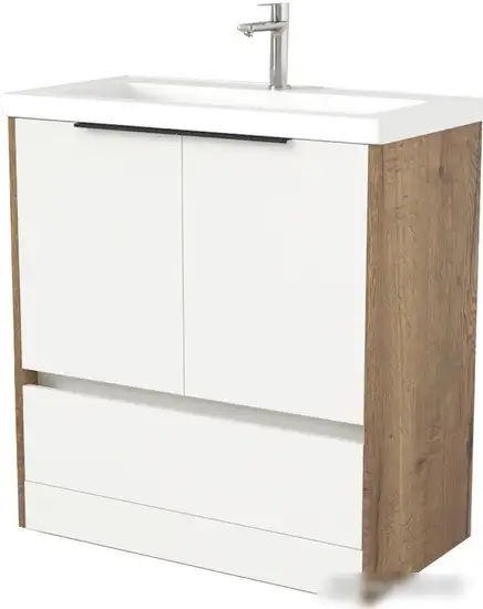 Дабер Тумба под умывальник 017 Тобага/Эридан 80 17.8Т.0.21Ч (дуб галифакс/белый/ручка черная)