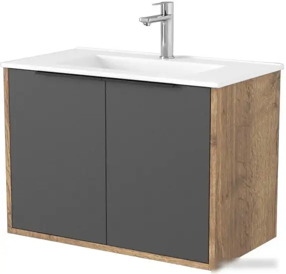 Дабер Тумба под умывальник 018 70 Т18.7.0.22Ч (дуб галифакс/серый/ручка черная)