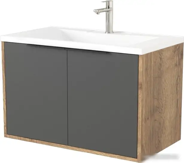 Дабер Тумба под умывальник 018 Andrea Elen 80 Т18.8А.0.22Ч (дуб галифакс/серый/ручка черная)