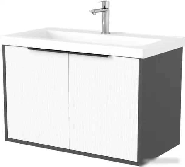 Дабер Тумба под умывальник 018 Тобага/Эридан 80 Т18.8Т.0.20Ч (белый древесный/серый/ручка черная)