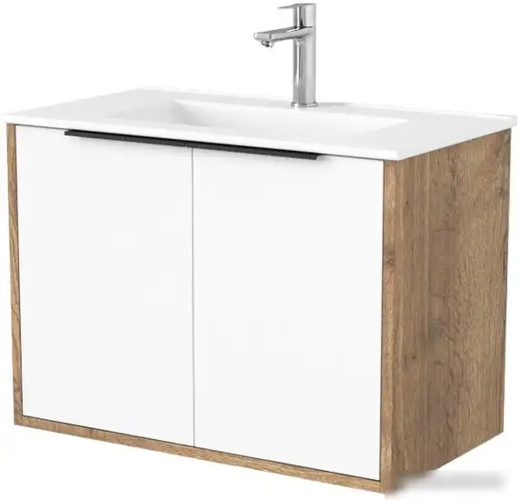 Дабер Тумба под умывальник 018 WeltWasser Deilbach 7517-70 Т18.7W.0.21Ч (дуб галифакс/белый/ручка черная)