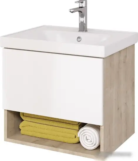 - Совместимость с умывальниками шириной 60 см — обеспечивает универсальность выбора.