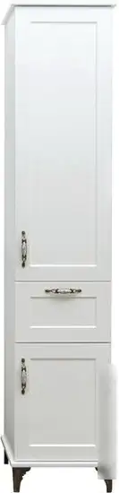 | Информация | Правосторонний шкаф-пенал в классическом дизайне и элегантном белом исполнении Bali Classic 42 R, добавит ванной комнате эстетику прошлых лет и обеспечит комфортную зону хранения. Напольная конструкция шкафа поделена на три секции — два отделения с полками, скрытыми за распашными дверками с доводкой и выдвижной ящик. Винтажные ручки под бронзу с керамическими вставками украшают рамные фасады шкафа, делая образ изысканным и более роскошным. |