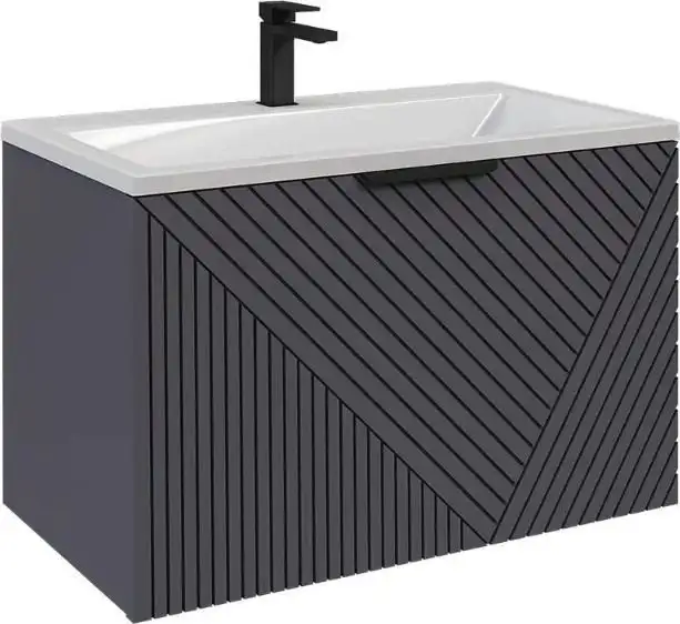 Тумба под умывальник Grossman Блисс-70 выполнена из МДФ и предназначена для установки под умывальник шириной 70 см. Она подвесная, что облегчает уборку и делает интерьер более современным. Тумба имеет угловую конструкцию, не занимает лишнее место и отлично подходит для небольших помещений. В комплект входит умывальник, что упрощает сборку и установку. Благодаря встроенному органайзеру пространство внутри тумбы остается аккуратным и организованным. Простая конструкция обеспечивает стабильность и долговечность. Тумба выполнена в стильном сером цвете графит, гармонично сочетаясь с разными интерьерами. Внутри есть пять выдвижных ящиков с доводчиками, что облегчает хранение и доступ к предметам. Глубина составит 45 см, высота — 40 см, а вес — 18.8 кг, что обеспечивает удобство в монтаже и использовании.