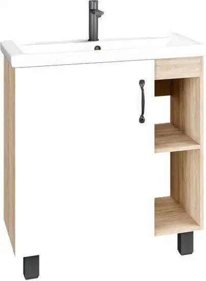 Тумба под умывальник Grossman Флай 70 107001 отлично подойдет для современной ванной комнаты. Она выполнена из прочных материалов — ЛДСП и МДФ, что обеспечивает долговечность. Тумба имеет ширину 70 см и глубину 43 см, что позволяет удобно разместить все необходимые предметы. Ее дизайн сочетает классический дуб сонома и чистый белый цвет, создавая приятную и светлую атмосферу. Тумба устанавливается на пол, она не угловая и легко впишется в любой интерьер. Обратите внимание на простоту ухода и надежность.