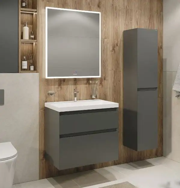 Тумба под умывальник Grossman Меркадо-60 выполнена из ЛДСП и МДФ, что обеспечивает прочность и долговечность. Размеры 60 см шириной и 45 см глубиной позволяют легко разместить её в любой ванной комнате. Тумба устанавливается в подвесном формате, что делает уборку проще и визуально помогает создать простор. Она окрашена в тёмно-серый цвет графит, который хорошо сочетается с разными стилями интерьера. Конструкция не имеет угловых элементов и встроенной подсветки, что делает её безопасной и функциональной. Глубина 45 см и высота 58 см позволяют удобно использовать пространство. Тумба оснащена мягкими и прочными доводчиками для плавного открывания и закрывания дверец. Это обеспечивает комфорт и долговечность эксплуатации. Встроенная система помогает оптимизировать хранение вещей и управлять ими легко. Эта модель отлично подходит для тех, кто ищет практичное решение для ванной комнаты.