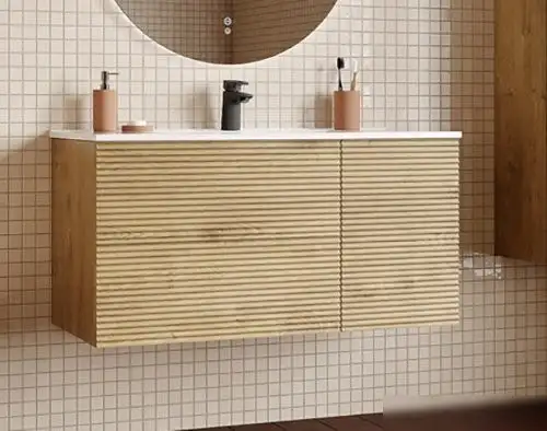 Тумба под умывальник IDDIS Bild BIL10V0i95 выполнена из МДФ в светлом деревяном цвете и предназначена для подвесной установки. Она имеет ширину 100,3 см и глубину 45,2 см, позволяя удобно разместить умывальник шириной 100 см. Тумба оснащена системой доводчиков и механизмом открывания нажатием на фасад, что облегчает использование и обеспечивает тихое закрытие. Не включает встроенную подсветку или корзину для белья, однако имеет фиксированный уровень влагозащиты IP20, что подходит для помещений с умеренной влажностью. Конструкция не угловая и не включает встроенную подсветку, но идеально подходит для современного интерьера. Тумба легко монтируется на стену, освобождая пространство в ванной. Надежная и стильная, она дополняет интерьер и сохраняет чистоту. Благодаря своей функциональности и приятному дизайну, тумба подойдет для комфортного использования в ванной комнате.
