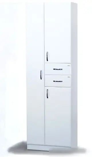 Мебель для ванных комнат Misty — это шкаф-пенал шириной 60 см, выполненный из ЛДСП и МДФ в белом цвете, который легко впишется в любой интерьер. Он устанавливается на пол, что обеспечивает устойчивость. В шкафу есть выдвижные водочки, которые позволяют легко открывать и закрывать дверцы. Встроенная корзина для белья помогает хранить грязное белье аккуратно и удобно. Глубина шкафа составляет 33,6 см, а высота — 190 см, что обеспечивает много места для хранения. Внутри шкафа можно разместить разные вещи благодаря его функциональной конструкции. Высокие крапки и прочные материалы гарантируют долговечность и надежность. Шкаф помогает организовать уборку в ванной и сохранить комфорт в комнате.