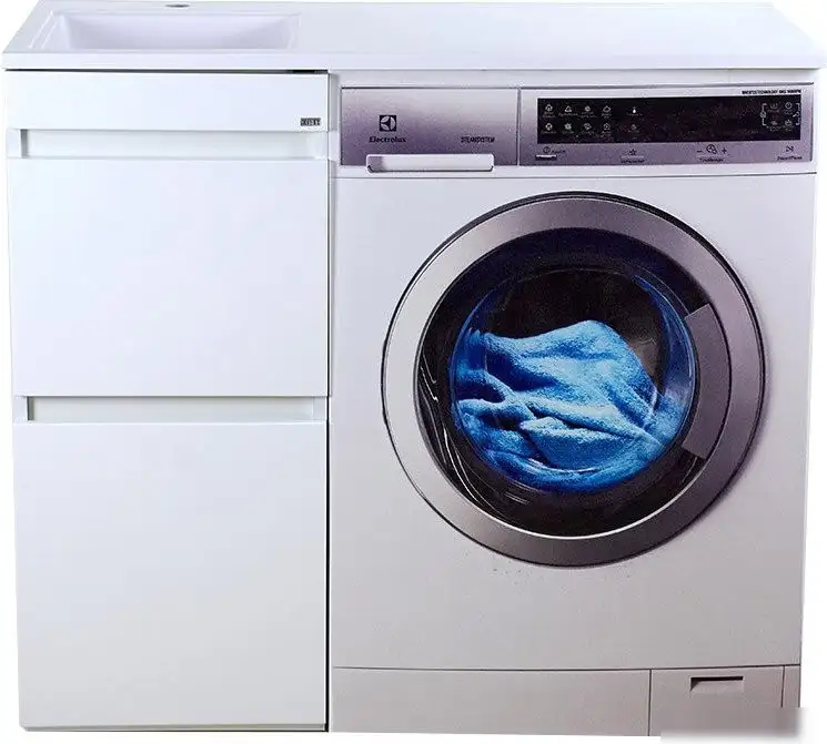 - Ширина 100 см — позволяет разместить все необходимые предметы для умывания.