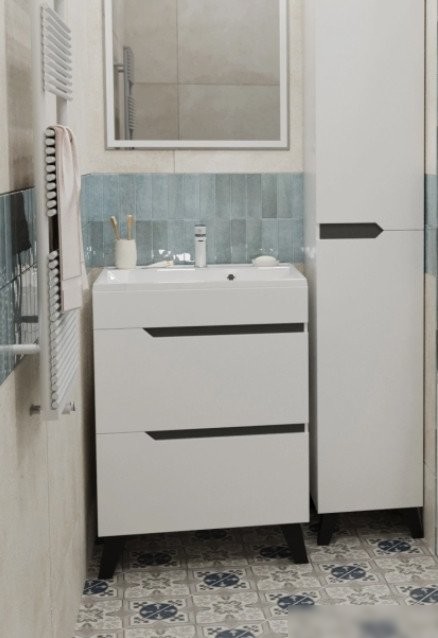 Тумба под умывальник Mixline Орион-60 выполнена из ЛДСП и МДФ, что обеспечивает её прочность и долговечность. Она предназначена для установки на пол и подходит для умывальников шириной 60 см. Тумба имеет ширину 59 см, глубину 44,6 см и высоту 69 см. В собранном виде она удобно стоит на полу и весит около 28 кг, что обеспечивает стабильность. Благодаря установленным доводчикам ящики плавно открываются и закрываются, что удобно в использовании. Тумба доступна в белом, сером и черном цветах, что помогает подобрать ее под любой интерьер. Одной из отличительных особенностей является угловая конструкция, которая экономит пространство. В тумбе отсутствует встроенная подсветка и угловая конструкция, что делает её простой и функциональной. Эта модель отлично подходит для тех, кто ищет практичный и современный вариант под умывальник.