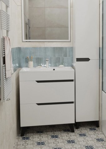 Тумба под умывальник Mixline Орион-70 выполнена из прочных материалов — ЛДСП и МДФ. Она устанавливается на пол и подходит для умывальников шириной 70 см. Тумба имеет классическую белую, серую или черную расцветку, что позволяет подобрать её к любой ванной. Конструкция не включает угловых элементов и встроенную подсветку, что упрощает уход и обслуживание. Тумба легко собирается и обеспечивает стабильность в использовании. Ее ширина — 67 см, глубина — 44,6 см, а высота — 69 см. Вес конструкции составляет около 30 кг, что делает её прочной и долговечной. Внутри есть отверстия для удобной эксплуатации сантехники и хранения. Эта тумба помогает организовать пространство и скрыть все коммуникации. Она отлично смотрится и прослужит вам долго благодаря качественной сборке и материалам.
