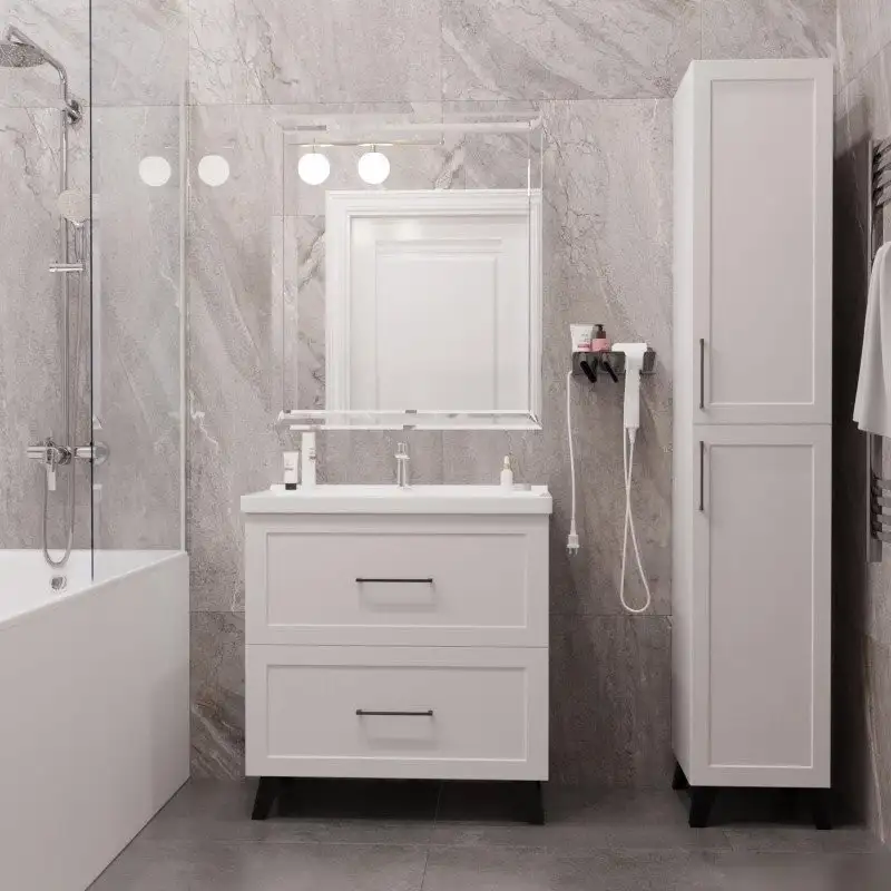 Тумба под умывальник Mixline Риф-80 идеально подходит для ванных комнат. Она выполнена из прочных материалов: ЛДСП и МДФ, что обеспечивает долгий срок службы. Тумба устанавливается на пол, не занимает много места и легко сочетается с разными интерьерами. Ее ширина 76.5 см подходит для умывальника шириной 80 см. Конструкция без углов и встроенной подсветки делает её проще в уходе. Внутри есть места для хранения вещей, что помогает держать ванную комнату аккуратной. Тумба весит 31,9 кг и легко собирается. Она подойдет для размещения в стандартных санузлах. Также важна способность корпуса выдерживать ежедневное использование. Обратите внимание, что изделие бывает в белом или черном цвете, что помогает выбрать подходящий вариант для вашей ванной.