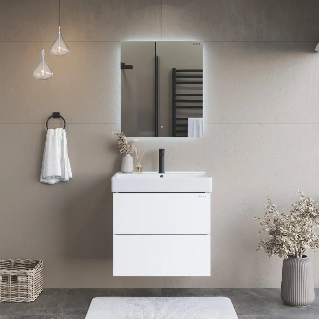 Тумба под умывальник Onika Эсквана 65 выполнена из ЛДСП и МДФ, что обеспечивает её долговечность и надежность. Она имеет ширину 62 см и подходит для умывальника шириной 65 см, создавая удобное место для хранения в ванной комнате. Тумба устанавливается в подвесном стиле, что облегчает уборку под ней и делает интерьер более современным. Конструкция не угловая, что позволяет легко разместить её в любом пространстве. Размеры: глубина 46 см, высота 56 см, вес 22,2 кг. Управление фасадом осуществляется нажатием, что делает использование удобнее. Тумба выполнена в классическом белом цвете, гармонирующем с любым дизайном ванной. Она отлично сочетает простоту и практичность для повседневных нужд. Улучшенные материалы и надежная сборка обеспечивают долгий срок службы.