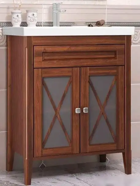 Тумба с умывальником Palerma идеально подходит для ванной комнаты. Она выполнена из прочного массива дерева и имеет классический коричневый цвет. Размеры: ширина 80 см, глубина 48 см, высота 87 см. Тумба устанавливается на пол, что обеспечивает устойчивость и легкий доступ. В комплект входит умывальник шириной 80 см, что делает удобным его использование. Благодаря угловой конструкции, тумба хорошо вписывается в различные планировки. Она не имеет встроенной подсветки и дополнительных корзин для белья, что упрощает уход. Дверцы оснащены доводчиками, что обеспечивает мягкое закрывание и долгий срок службы. Эта модель сочетает практичность, стиль и долговечность, делая ваш интерьер современным и удобным.