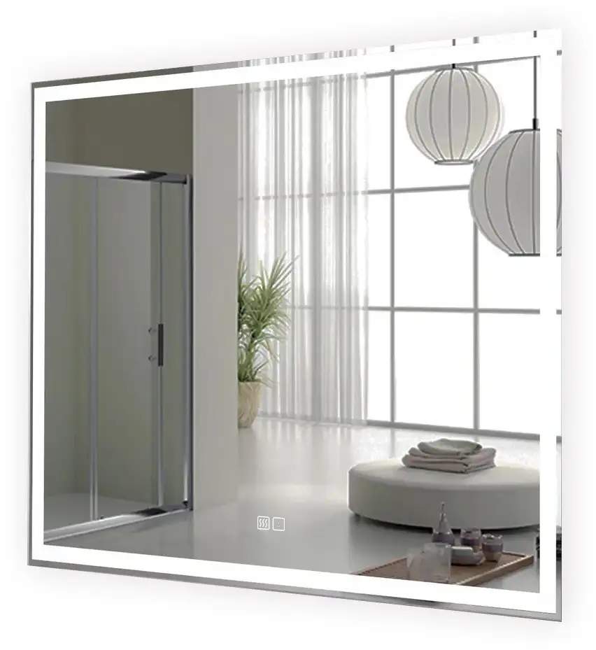 Это зеркало Greta размером 80x60 см с LED-подсветкой, изготовленное из качественного зеркального полотна. Оно оснащено подогревом, который помогает устранить запотевание, и сенсорным выключателем с диммером для регулировки яркости света. Все электрические компоненты скрыты внутри корпуса из пластика, что защищает их от влаги и создает красивое освещение вокруг зеркала. Светодиодная лента по периметру зеркала обеспечивает яркое и равномерное освещение. Класс пылевлагозащиты IP44 позволяет использовать его в комнатах с высокой влажностью, например, в ванной. Зеркало легко подключить к электросети, есть сзади вывод для провода, а крепеж позволяет надежно его закрепить на стене.