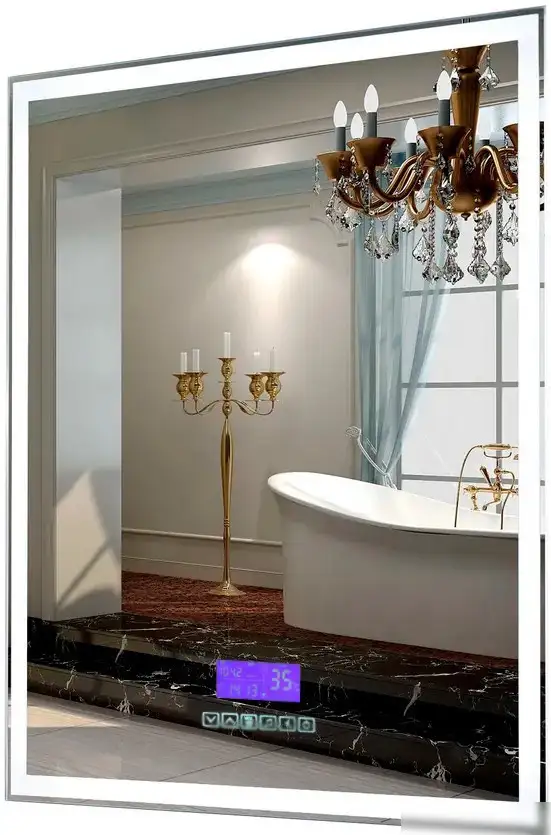 Зеркало Greta 80x90 — это удобное и практичное зеркало с подсветкой, которое легко крепится на стену. Оно имеет встроенные часы с датой и сенсорную панель для управления всеми функциями. В зеркале есть подогревание, чтобы оно не запотевало, а также музыкальная система с Bluetooth и радио, чтобы слушать музыку во время утренней подготовки. Зеркальное полотно изготовлено из безопасного стекла толщиной 4 мм производства AGC. Многофункциональная панель в нижней части помогает управлять настройками. Все электрические составляющие спрятаны внутри корпуса, защищая их от влаги, а световая подсветка создает приятный ореол вокруг зеркала. Это делает зеркало не только удобным в использовании, но и красивым элементом интерьера.