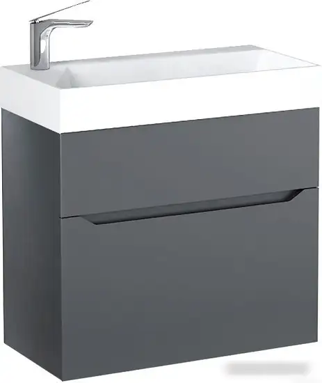 Тумба Raval Brik 55 в антрацитовом цвете отлично подойдет для вашей ванной комнаты. Она выполнена из ЛДСП, что делает ее прочной и легкой в уходе. Тумба устанавливается вмонтированным способом и занимает небольшой простор — шириной 52,5 см и глубиной 31,6 см. Она подходит под умывальник шириной 55 см, создавая аккуратный и современный вид. Внутри есть место для хранения вещей — это поможет сохранить порядок в ванной. Тумба не имеет встроенной подсветки и не комплектуется умывальником, что дает вам возможность выбрать подходящий вариант. Размеры и конструкция обеспечивают удобство использования и долговечность.