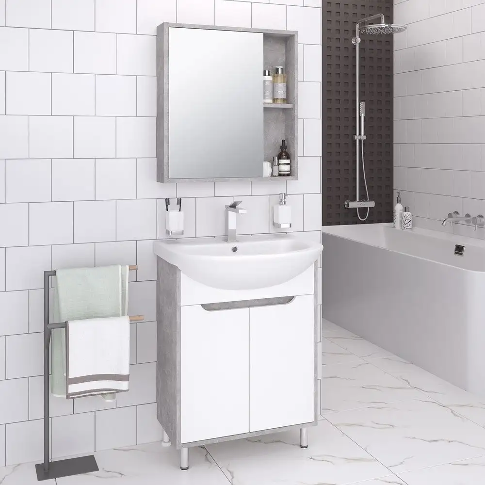 Runo Тумба с умывальником Runo Эко 50 + Уют 50 (напольная, белый/серый бетон)