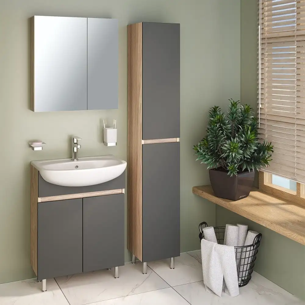 Runo Тумба с умывальником Runo Лада 60 + Уют 60 (напольная, дуб/графит)