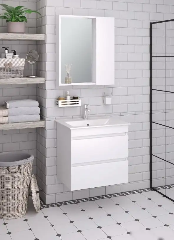 Runo Тумба с умывальником Runo Манхэттен 65 + Оскар 65 (подвесная, белый)
