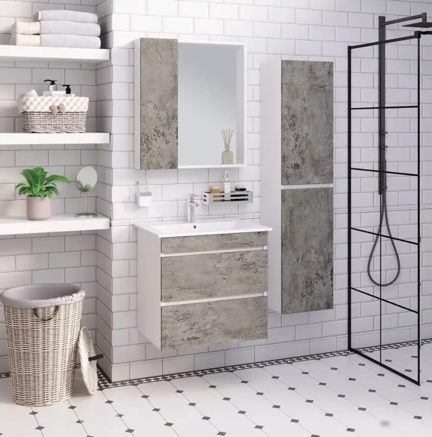 Runo Тумба с умывальником Runo Манхэттен 75 + Оскар 75 (подвесная, серый бетон)