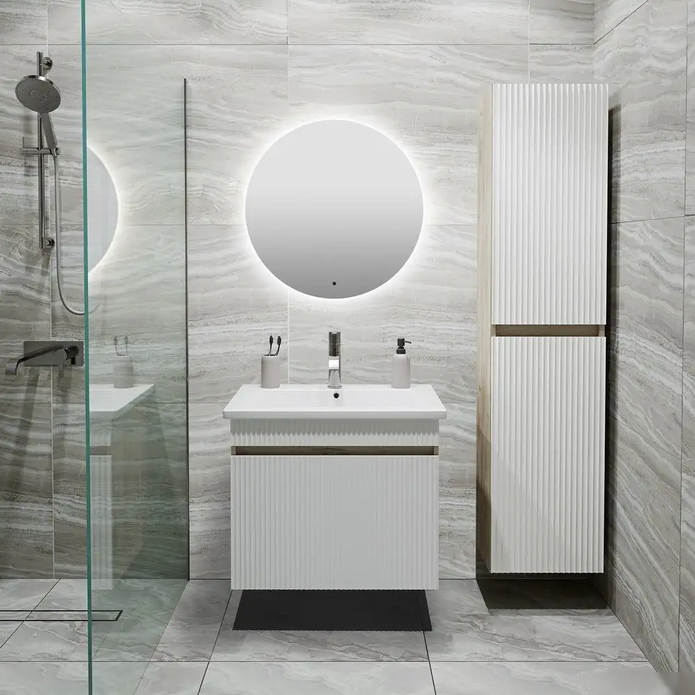 Тумба Runo Модена 65 с умывальником Оскар 65 — это подвесное решение для ванной комнаты, выполненное из ЛДСП и МДФ в белом цвете. Она легко крепится к стене, что экономит пространство. Размеры тумбы: ширина 66 см, глубина 47 см и высота 50 см. Тумба обладает угловой конструкцией без выступов и обеспечивает удобный доступ к водителям. В комплект входит умывальник, что ускоряет установку. Она защищена от пыли и влаги с классом IP20, что делает её прочной и долговечной. Степень защиты помогает сохранять чистоту и предотвращает повреждения. Тумба весит 36.7 кг и отлично подходит для современного интерьера. Ее компактный размер и функциональность делают её удобным выбором для ванной.