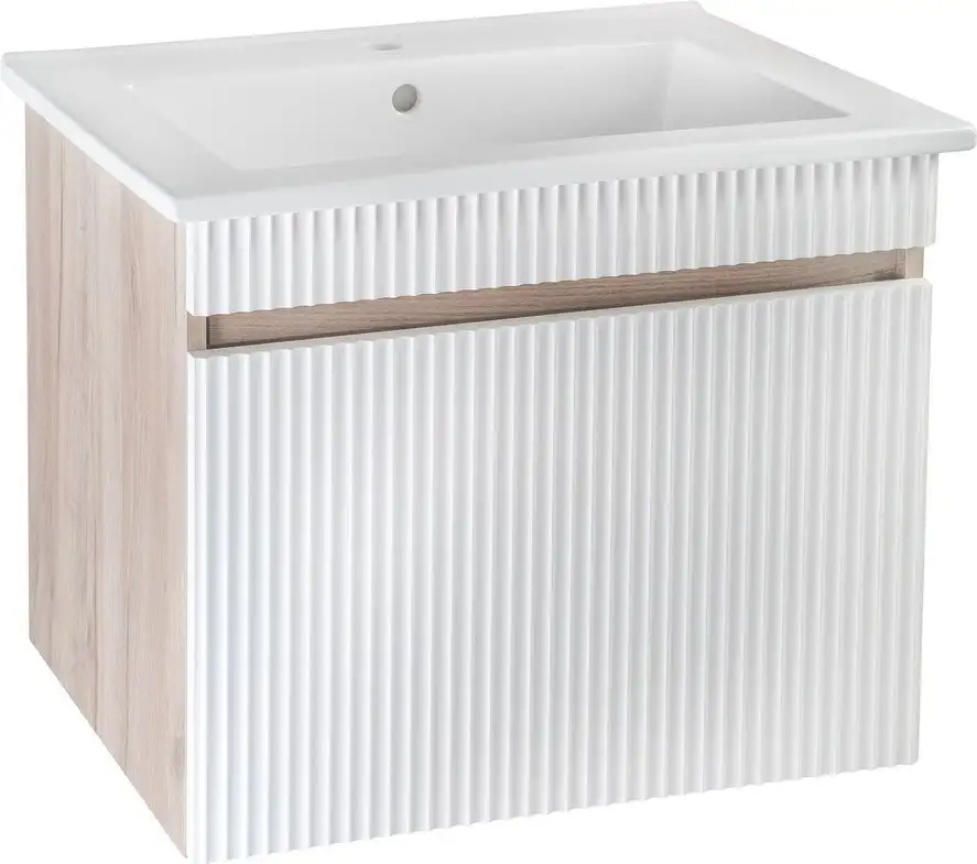 Runo Тумба с умывальником Runo Модена 75 + Оскар 75 (подвесная, крафтовый дуб)
