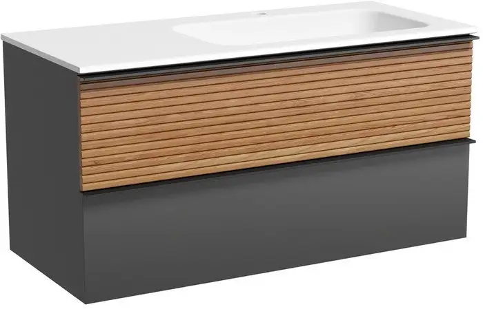 Тумба под умывальник Sancos Delta DL100RGR выполнена из МДФ и имеет современный дизайн в двух цветах: дуб красный и графит. Она около 99,5 см в ширину и 50 см в высоту, что делает ее удобной и просторной. Тумба устанавливается на стену, ее легко монтировать, а конструкция не занимает много места. Обратите внимание на сочетание матовой металлической ручки и фактуры фасада, что придает ей стильный вид. В комплект не входит умывальник, но тумба хорошо подходит для последующей установки. Также она имеет гладкие и фрезерованные фасады, что обеспечивает удобство использования. Эта модель отлично вписывается в современный интерьер ванной комнаты.