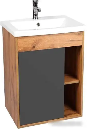 Тумба под умывальник Viant Бостон Como 50 имеет компактные размеры: ширина 46 см, глубина 38 см и высота 62 см. Она выполнена из прочных материалов – ЛДСП и МДФ, что обеспечивает долговечность и устойчивость. Тумба устанавливается на стену, что помогает сэкономить место в ванной комнате. В комплект не входит умывальник, его нужно приобретать отдельно. Тумба доступна в коричневом и сером цветах, что позволяет выбрать вариант под ваш интерьер. Благодаря подвесной конструкции, ее удобно чистить и ухаживать за полом под ней. Это практичное решение для организации пространства, обеспечивающее хранение важных предметов.