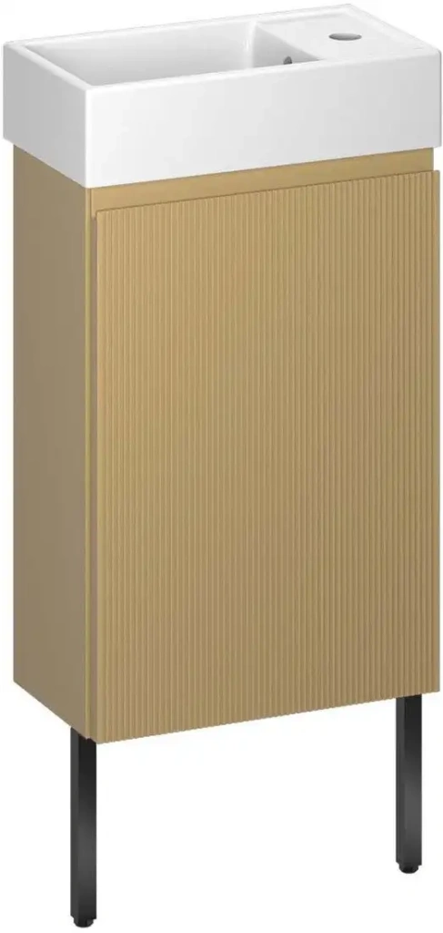 | Информация | Компактная тумба с керамической раковиной и ножками – идеальный выбор для ценителей комфорта и стильного дизайна. Продуманная система хранения обеспечит безупречный порядок в небольшой ванной комнате или туалете. ОПТИМАЛЬНОЕ ИСПОЛЬЗОВАНИЕ НЕБОЛЬШОГО ПРОСТРАНСТВА Настенная тумба с напольными опорами предназначена для установки с правосторонней или левосторонней раковиной и является емким местом для хранения текстиля, моющих средств и гигиенических принадлежностей. Благодаря подвесной конструкции изделие приобретает визуальную легкость, не перегружает пространство и сохраняет достаточно свободного места, что облегчает процесс уборки. Рельефный фасад с тонкой фрезеровкой придает интерьеру изысканный французский шарм и ощущение уюта даже в небольшом помещении. Мебельная фурнитура Hettich со встроенным доводчиком обеспечивает плавное и бесшумное закрывание дверцы, а отсутствие накладных ручек – монолитность изделия. Это неоспоримые критерии эксклюзивности решений от Wellsee по характеристикам материалов и совершенству конструкции. УДОБНАЯ ЕЖЕДНЕВНАЯ ЭКСПЛУАТАЦИЯ Тумба с раковиной имеет ширину всего 40 см и предназначена для небольших помещений, где важно сохранить каждый сантиметр свободного пространства. Помимо габаритов корпуса, важным преимуществом коллекции WC Area является короткий размах дверцы, что позволяет без помех открывать мебель и не касаться пользователя или расположенных рядом предметов. Регулируемая внутренняя полка тумбы позволит разместить необходимые гигиенические принадлежности, а также емкости с бытовой химией разного объема и высоты. Подвесная конструкция позволяет установить изделие на оптимальной высоте для удобного мытья рук как взрослых, так и детей. Надежные крепления, входящие в комплект поставки, выдерживают нагрузку до 100 кг. ВЛАГОСТОЙКАЯ МЕБЕЛЬ С ЛАМИНИРОВАННОЙ ПОВЕРХНОСТЬЮ Основа тумбы – высококачественная импрегнированная плита МДФ, пропитанная специальным составом для усиления стойкости материала и максимальной защиты от влаги, перепадов температур и образования плесени. Многоступенчатая финишная отделка сопровождается нанесением водоотталкивающего лака и пятислойного защитного покрытия TotalCover® для предотвращения впитывания воды и разбухания мебели. Весь процесс распила, раскроя и кромления деталей тумбы происходит на автоматизированном лазерном оборудовании, что обеспечивает точность размеров, спилов и присадки элементов мебели с отклонением не более +/- 0,1 мм. Гарантированная сборка готового изделия без щелей, зазоров и других неприятных изъянов. КОМПАКТНАЯ И ГЛУБОКАЯ РАКОВИНА Мини-раковина с глянцевым покрытием приятна на ощупь, создает ощущение чистоты и легкости, а также идеально сочетается с компактной тумбой WC Area. Раковина, на бортике которой расположено стандартное отверстие под смеситель и остается небольшое место для гигиенических средств, удобна для мытья рук и гигиенических процедур, а ее малый вес существенно облегчает установку на мебель. Маленький умывальник производится по технологии шликерного литья с использованием натуральной глины и кварца и последующим обжигом заготовки при температуре 1250°С, что исключает образование пузырьков, пустот или трещин в готовом изделии. Благодаря грязеотталкивающему слою минералов и повыш