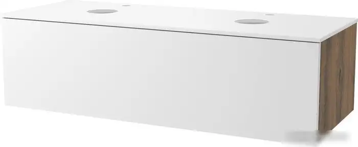 Тумба под умывальник "Кито" белого матового цвета сочетает простоту и удобство. Она подвесная, что упрощает уборку и придает интерьеру современный вид. В тумбе есть выдвижные ящики, где удобно хранить предметы гигиены и мелкие вещи. Каркас сделан из прочного ЛДСП, а фасады из крашеного МДФ, что обеспечивает долговечность и стильный внешний вид. Столешница из влагостойкой компакт-плиты легкая в уходе и устойчива к влаге и высоким температурам. В комплект входит сама тумба и столешница, которая легко соединяется. Тумба поставляется в разобранном виде, что облегчает транспортировку.