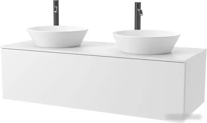 Тумба под умывальник Кито 120 K120LW0MWMC-KP13W выполнена в стильном белом матовом цвете и подойдет как для современного, так и для классического интерьера. Она крепится к стене, освобождая пространство под ней и облегчая уборку. В тумбе есть выдвижные ящики с тихим механизмом Quadro, что делает хранение гигиенических принадлежностей удобным и тихим. Каркас сделан из ЛДСП высокого качества, а фасады — из крашеного МДФ, что делает ее прочной и красивой. Белая столешница из влагостойкой компакт-плиты легко чистится и устойчива к влаге, пару и нагреву. В комплект входит тумба и столешница, которая защищена еврокромкой от повреждений. Постройка тумбы осуществляется самостоятельно, при необходимости можно заказать сборку и монтаж.