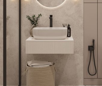 Тумба под умывальник Токио Премиум 60 выполнена из долговечного ЛДСП и имеет белый цвет, который подходит к разным стилям интерьера. Ее ширина — 60 см, что отлично подходит для умывальников такой же ширины. Подвесная конструкция обеспечивает легкую очистку пола и экономию пространства в комнате. Глубина тумбы составляет 47 см, а высота — 16,8 см, что делает ее удобной для использования. Тумба не имеет встроенной подсветки и угловых элементов, что упрощает ее монтаж и обслуживание. Устройство оснащено доводчиками, которые плавно закрывают дверцы, предотвращая шум и повреждения. Размеры и вес позволяют легко установить тумбу и перемещать ее по комнате. Вся конструкция надежна и долговечна, обеспечивая безопасное хранение бытовых предметов. Тумба хорошо сочетается с современными интерьерными решениями и дополняет оформление ванной комнаты.