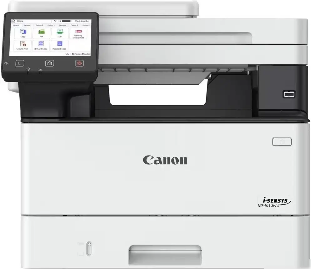 МФУ Canon i-SENSYS MF463dw II подходит для печати, копирования и сканирования формата А4. Оно печатает черно-белой лазерной технологией со скоростью до 40 страниц в минуту, что помогает быстро выполнять большие объемы работы. Устройство поддерживает автоматическую двустороннюю печать и сканирование, что экономит бумагу и ускоряет процессы. Благодаря цветному сенсорному экрану размером 12.7 см, его удобно управлять прямо на устройстве. МФУ работает с мобильных устройств, Wi-Fi и Ethernet, что обеспечивает удобный доступ к печати из разных источников. Встроенный накопитель объемом 4 Гб позволяет хранить важные файлы внутри устройства. Вместимость входных лотков достигает 900 листов, а выходных — 150, что подходит для больших офисных задач. В комплекте есть стартовый картридж и кабель питания, устройство легко подключается и работает долго без замены картриджей. Для надежной работы устройство рассчитано на нагрузку до 80 000 страниц в месяц. Оно сочетает высокую производительность и удобство в использовании.